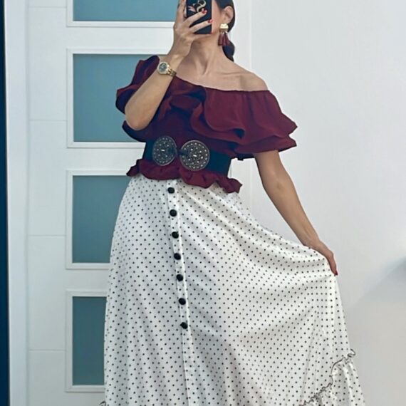 El precio original era: 29,95€.24,95€El precio actual es: 24,95€.Falda Rociera Lunaritos