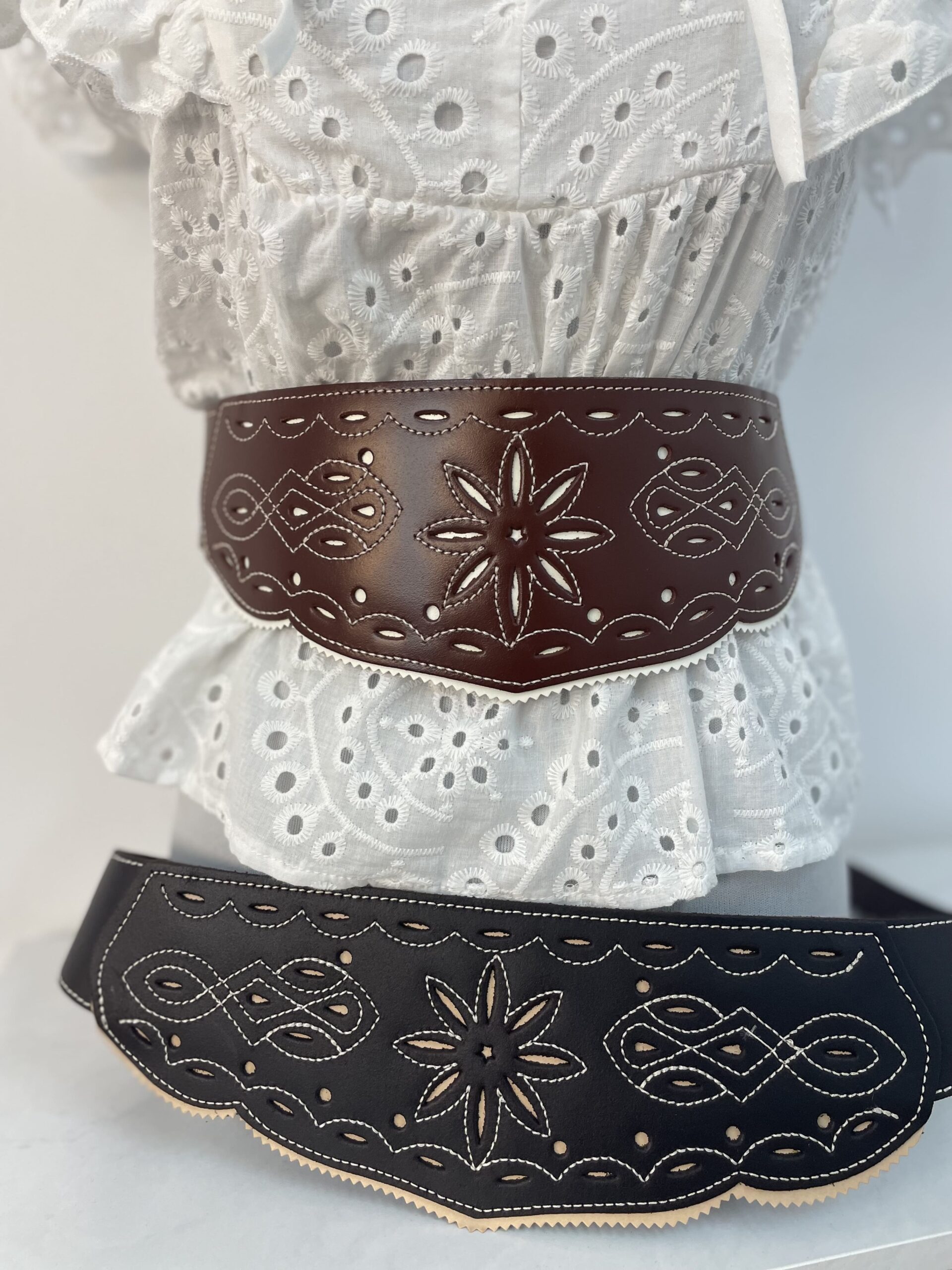 1. Cinturón de piel Nacional Picao, en dos tonalidades, Marrón chocolate y Marrón oscuro.