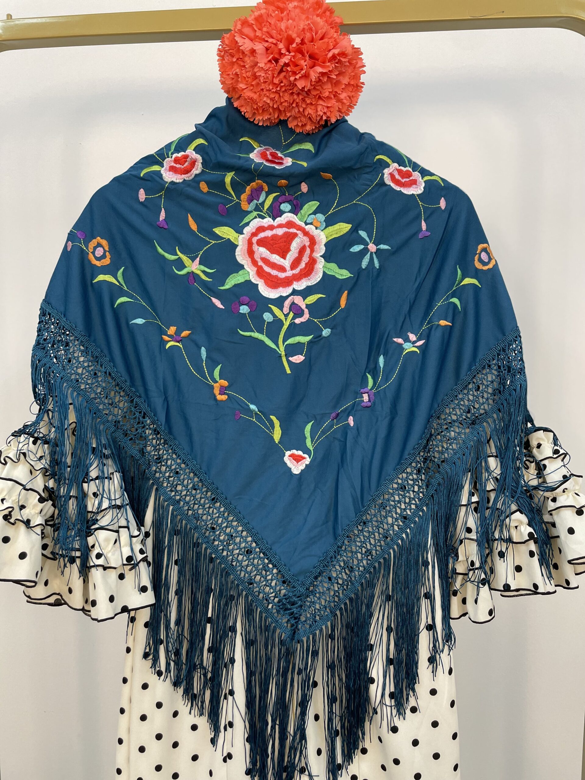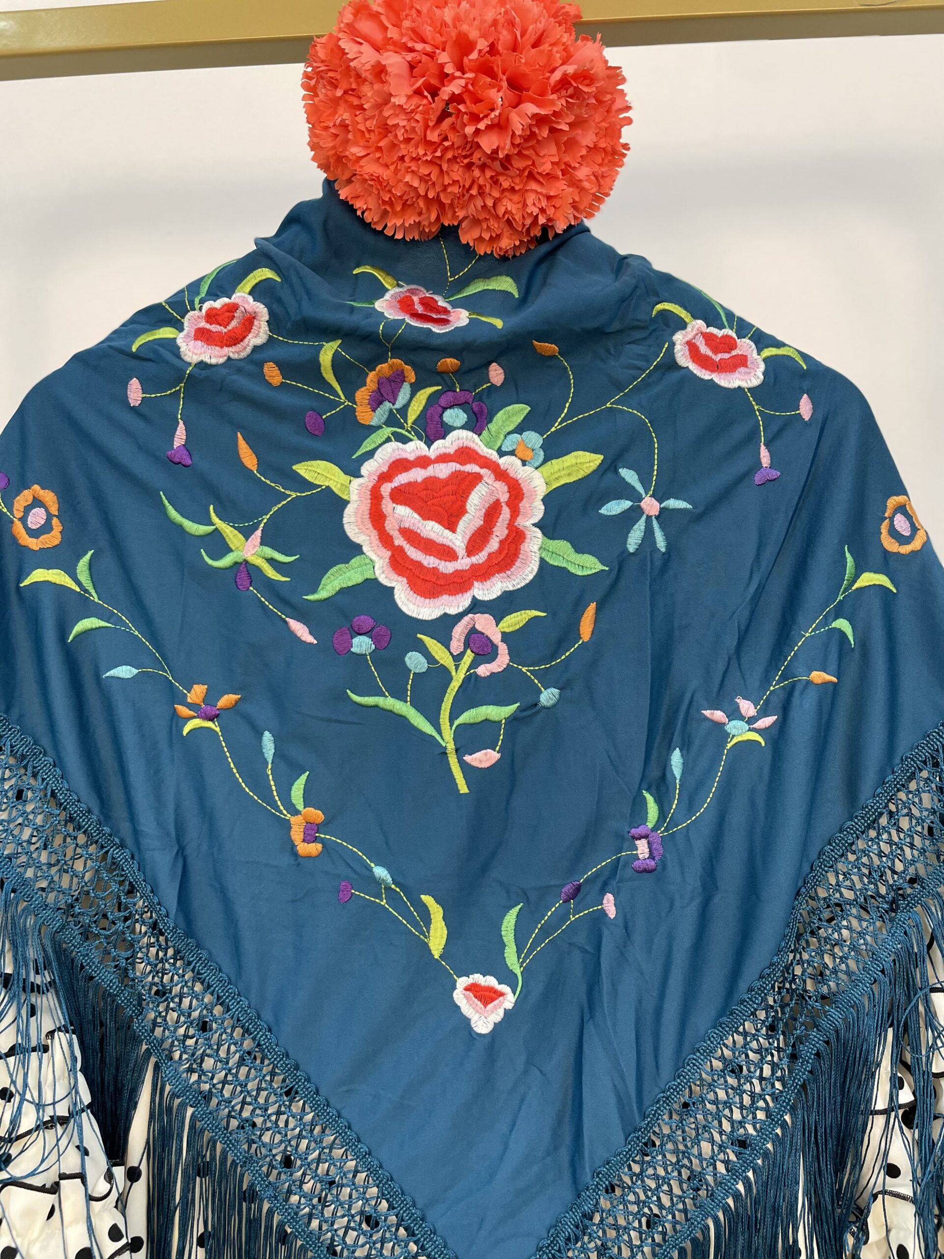 - Mantón petróleo con bordado de colores.