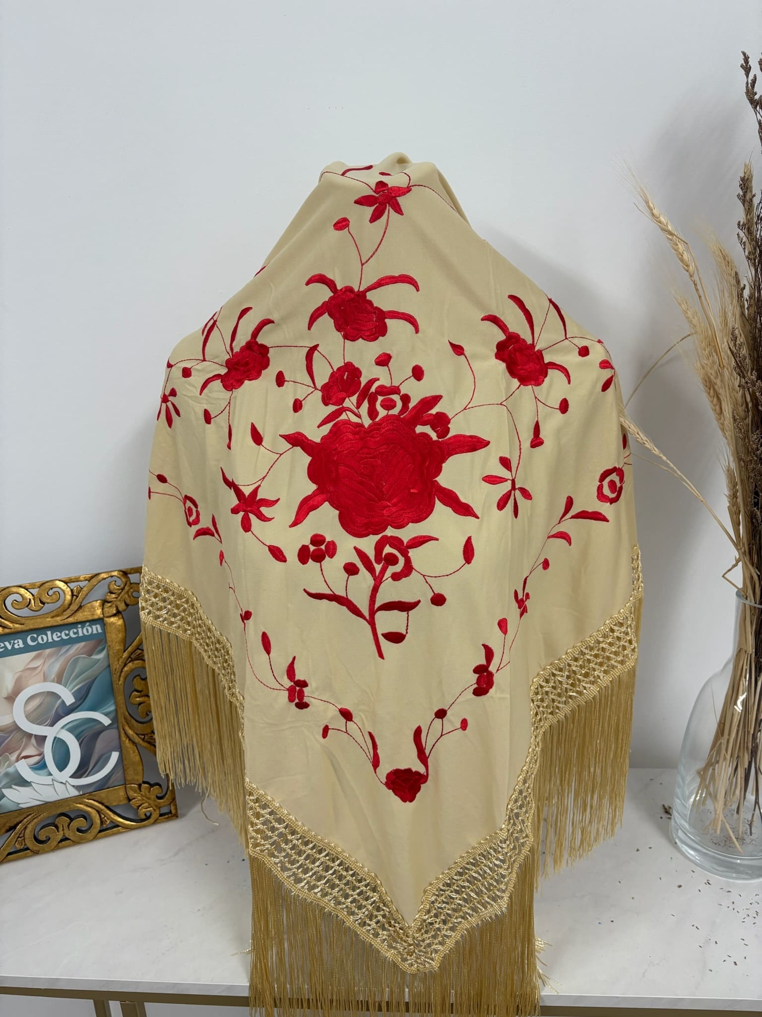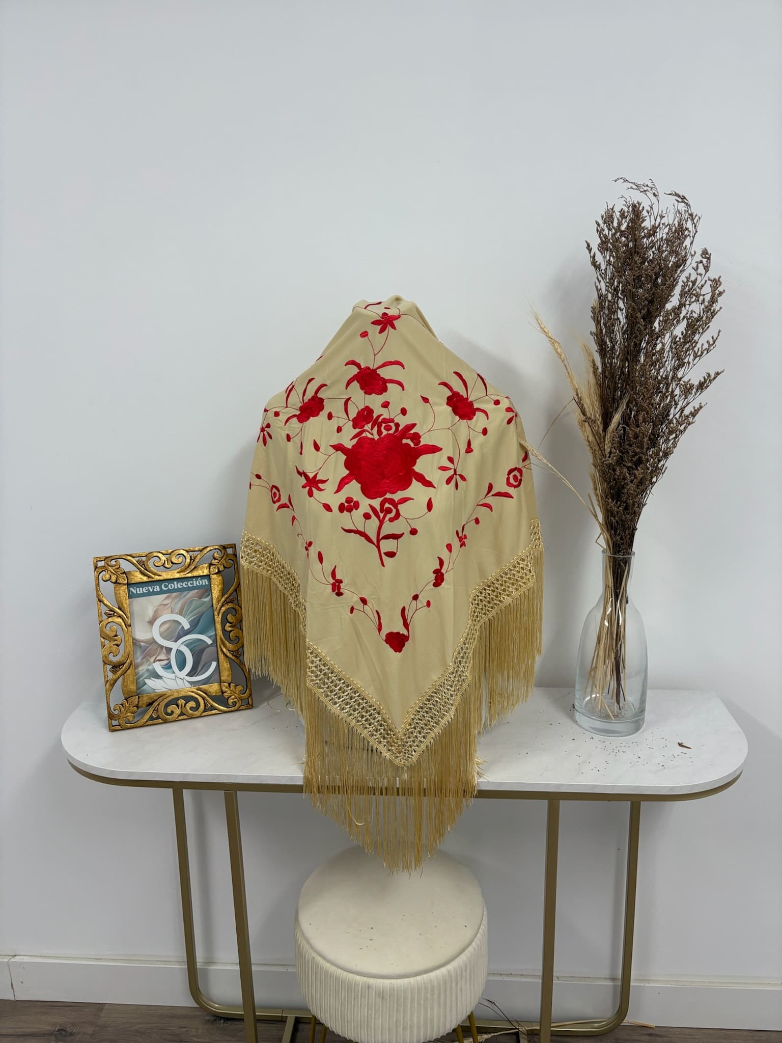 Mantoncillo 9,95 Champagne con bordado en rojo