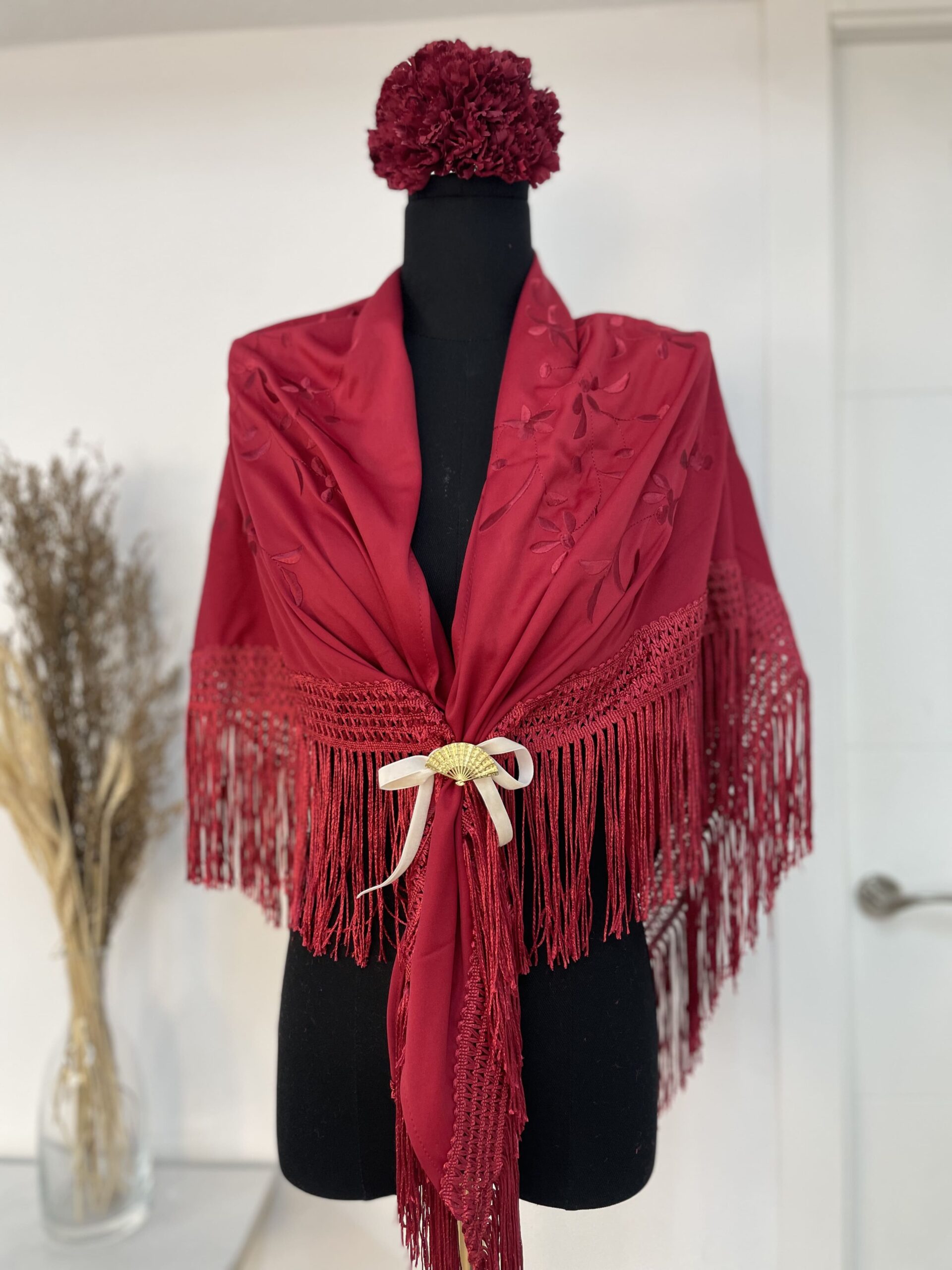 - Mantoncillo Burdeos Bordado al tono,