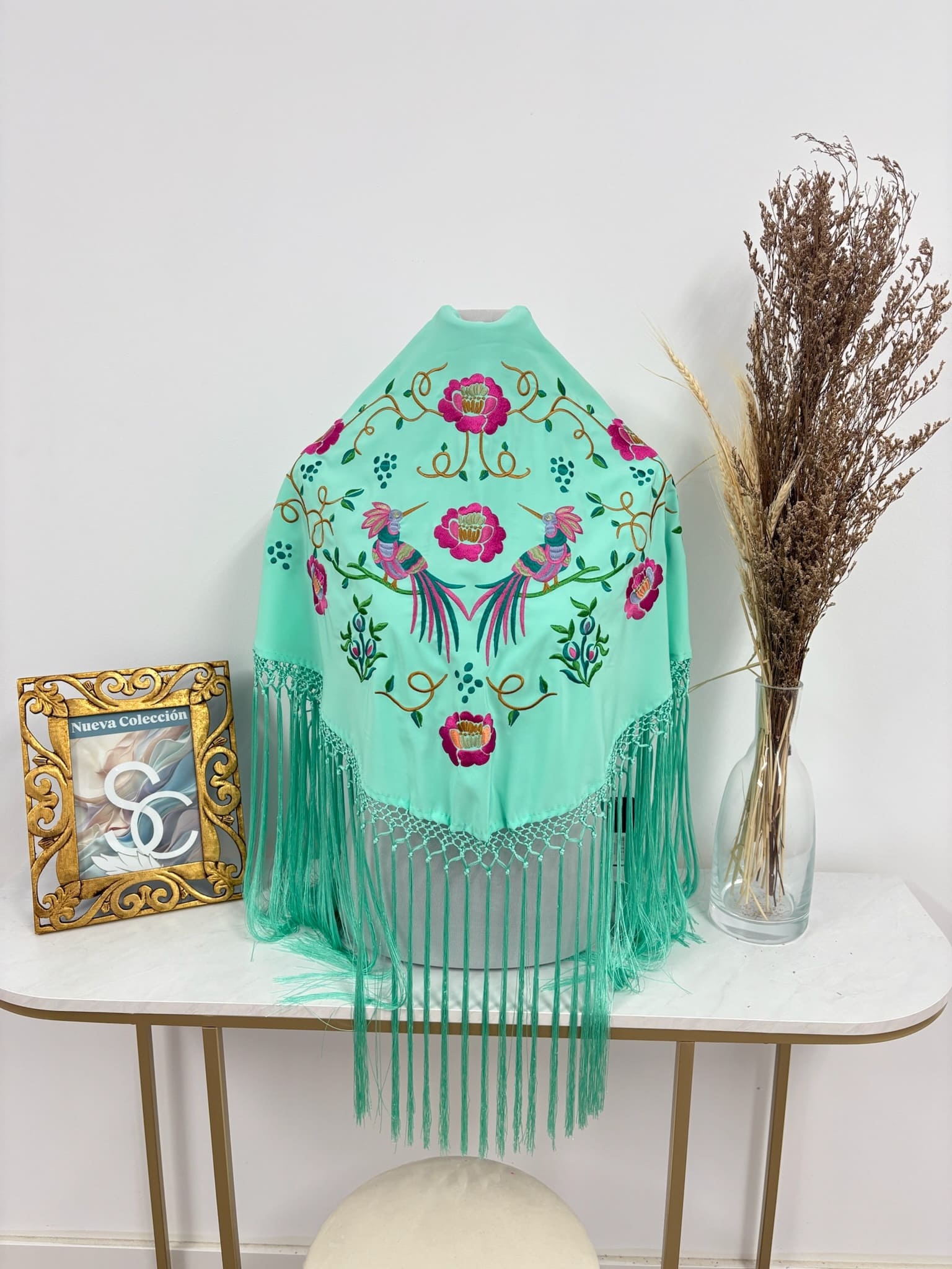 1. Mantoncillo de crespón 100% viscosa bordado.