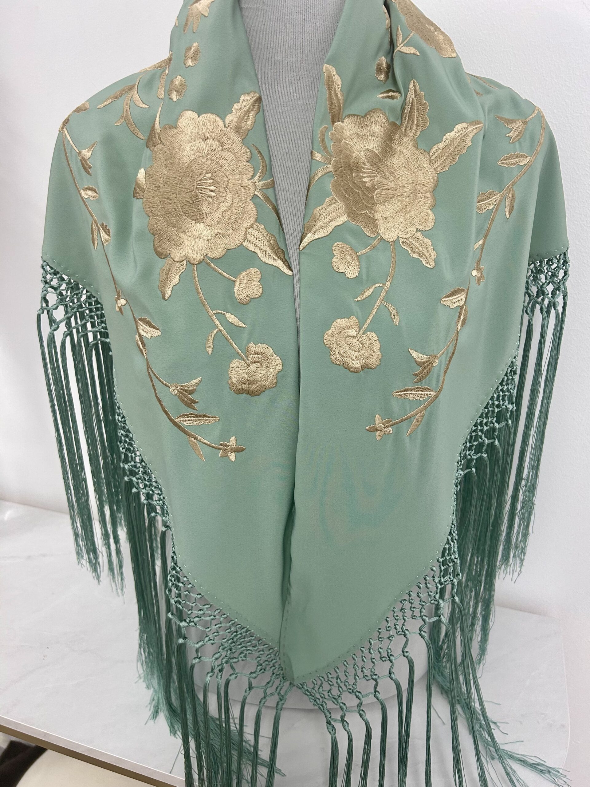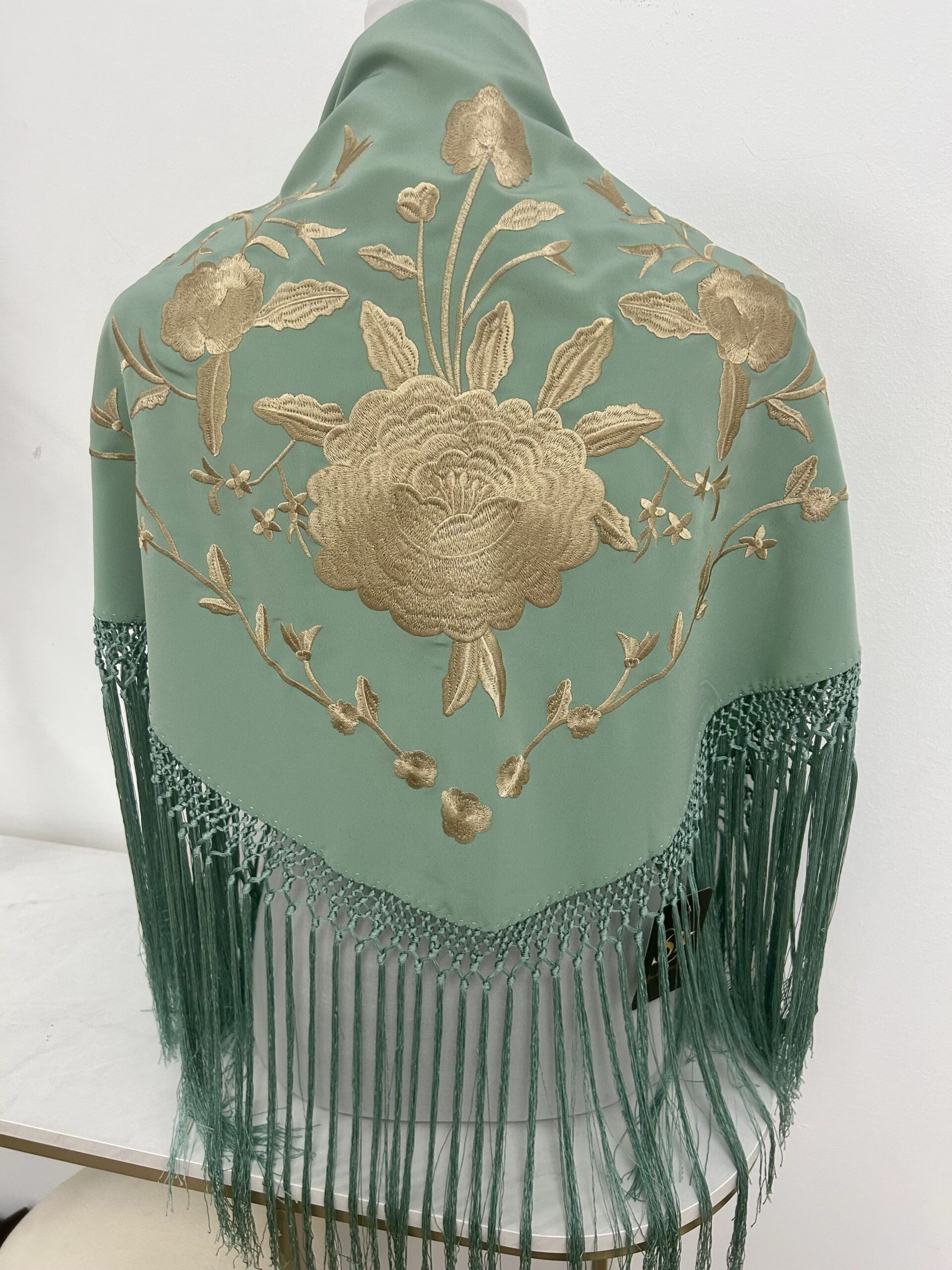 Mantoncillo Vede menta Bordado Rosas Doradas