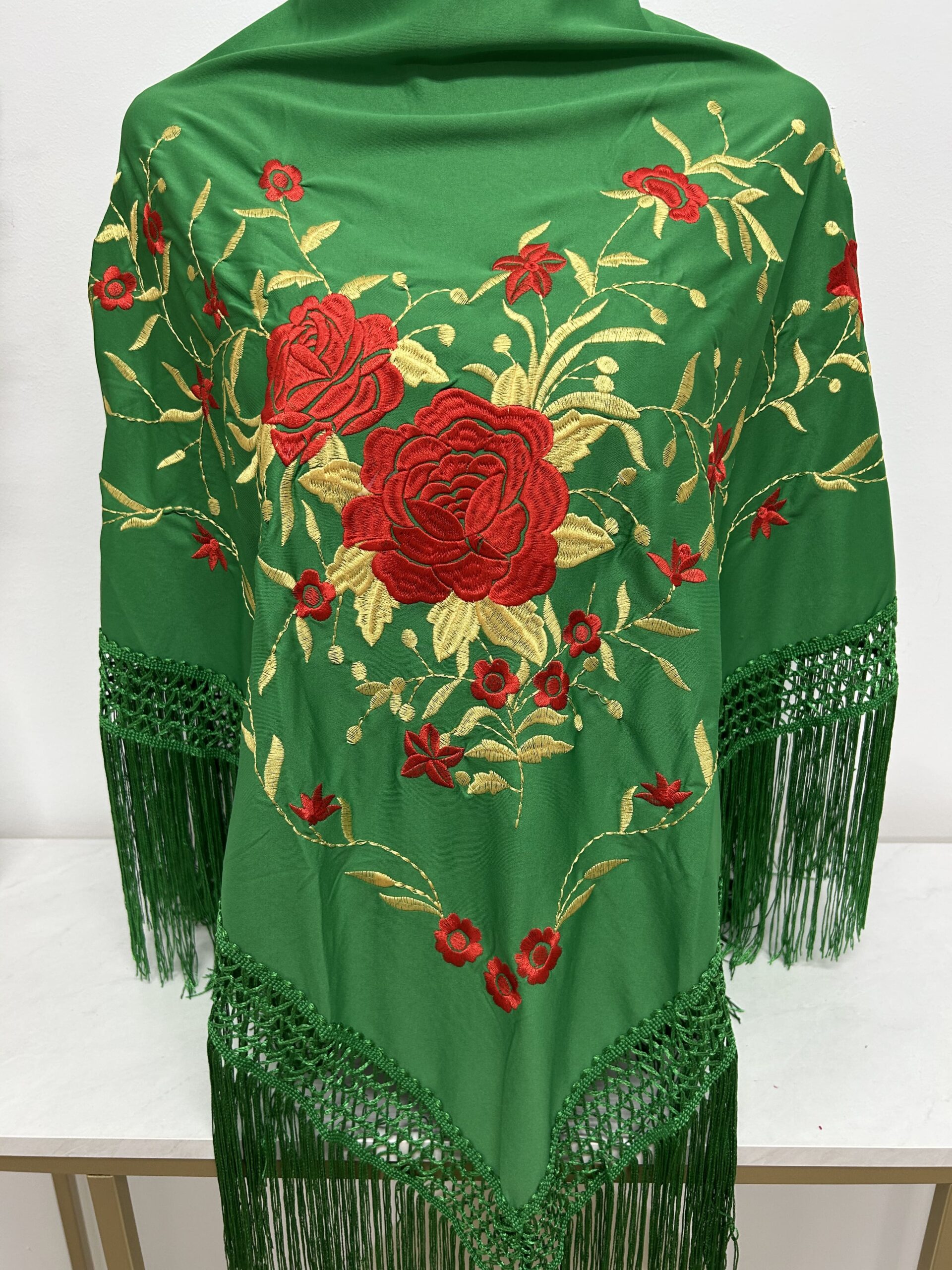 Mantoncillo Verde Andalucía Bordado Rojo y Dorado