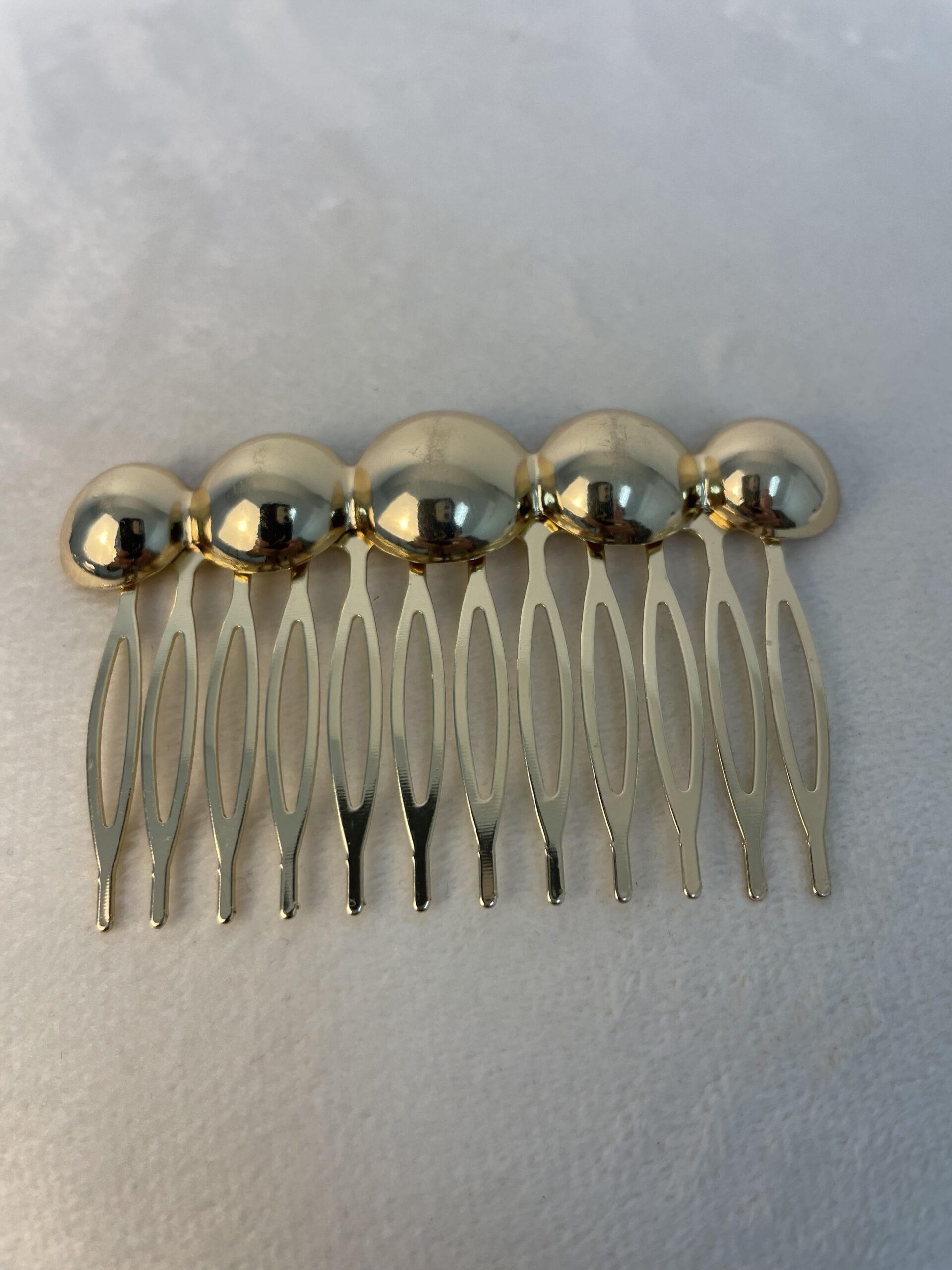 - Peinecillo en color dorado con cinco bolitas en relieve y 12 púas.