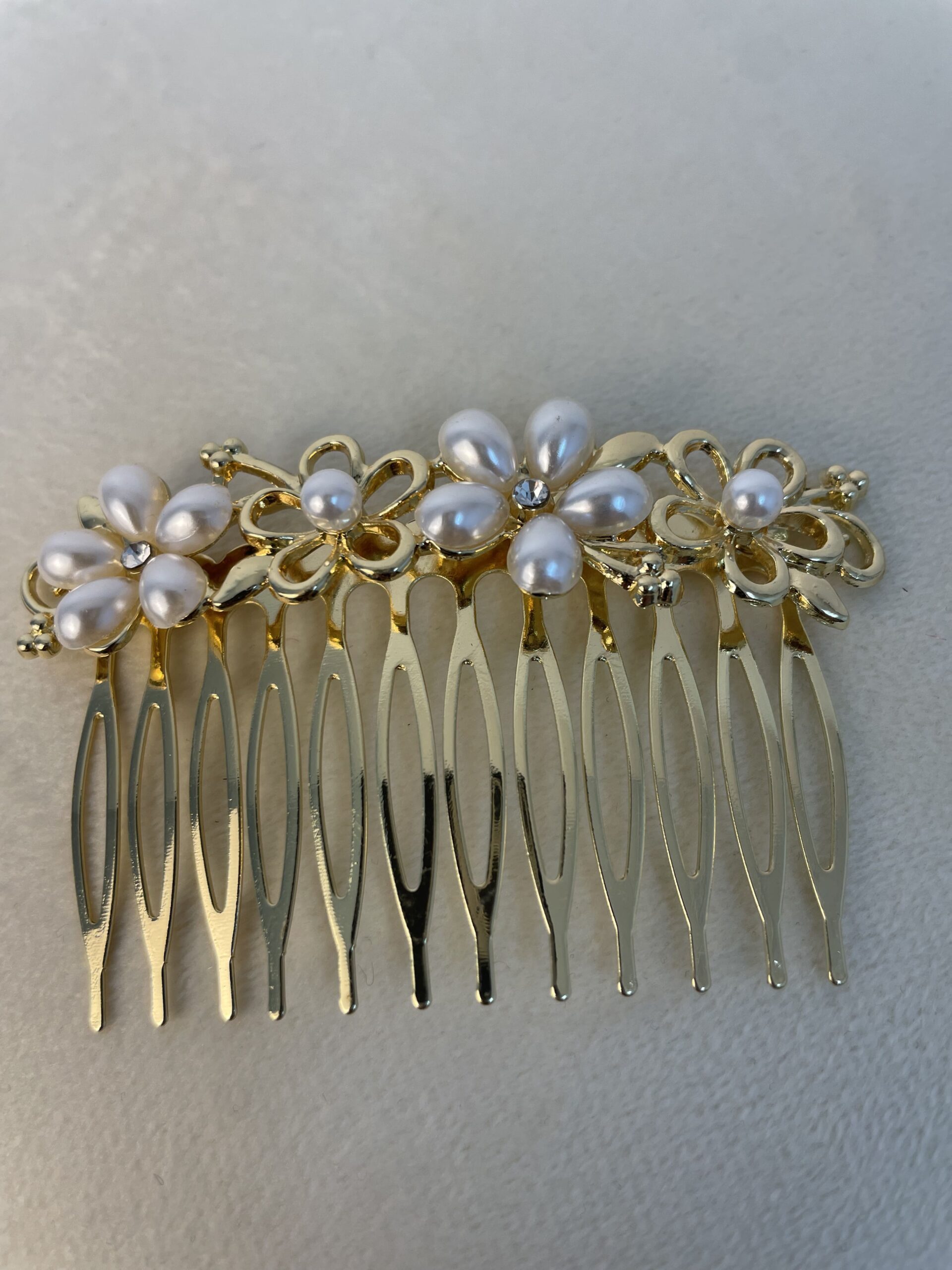 - Peinecillo en color dorado con flores y perlas 12 púas.
