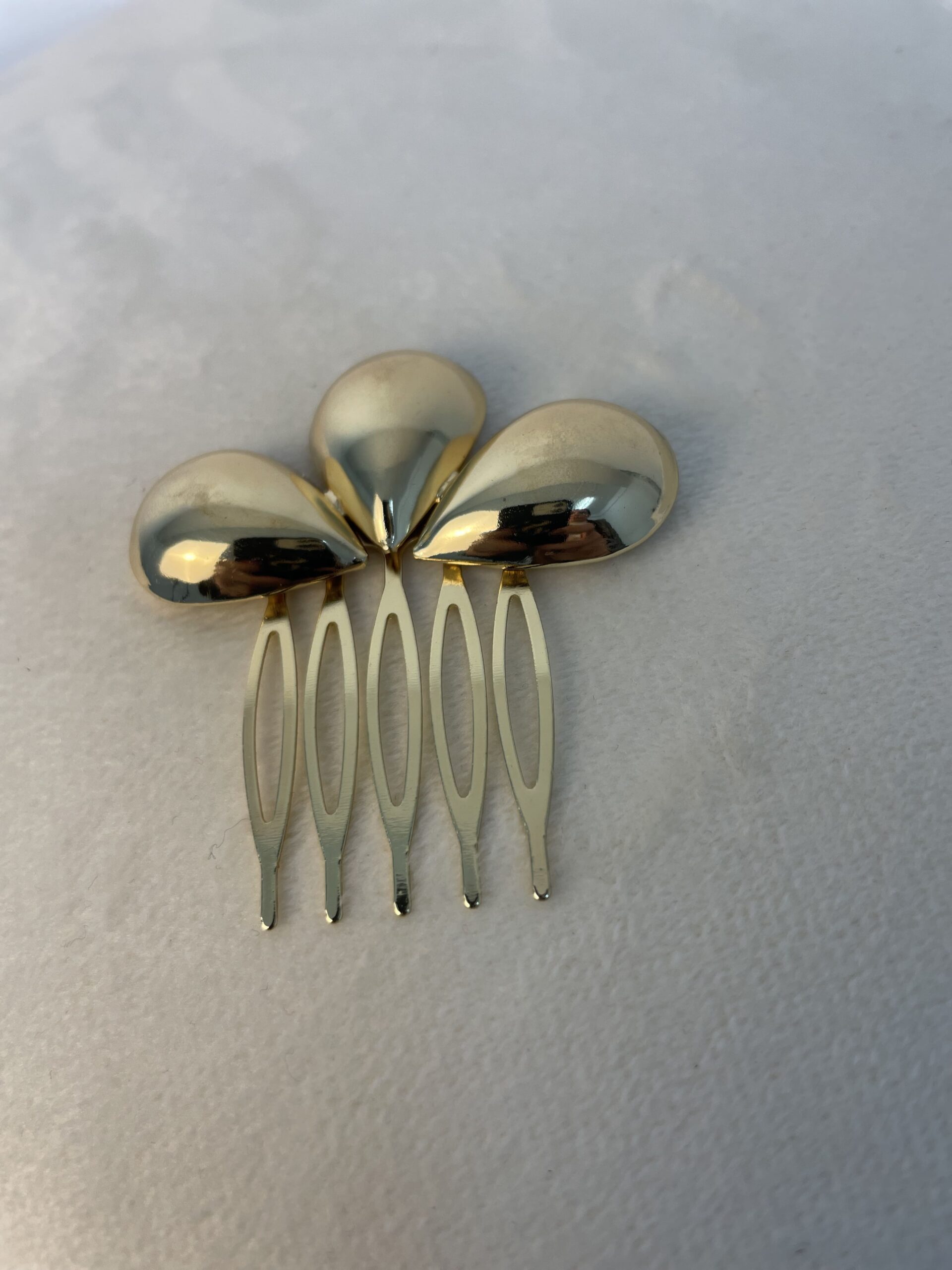1. Peinecillo dorado en forma de tres gotas con cinco púas.