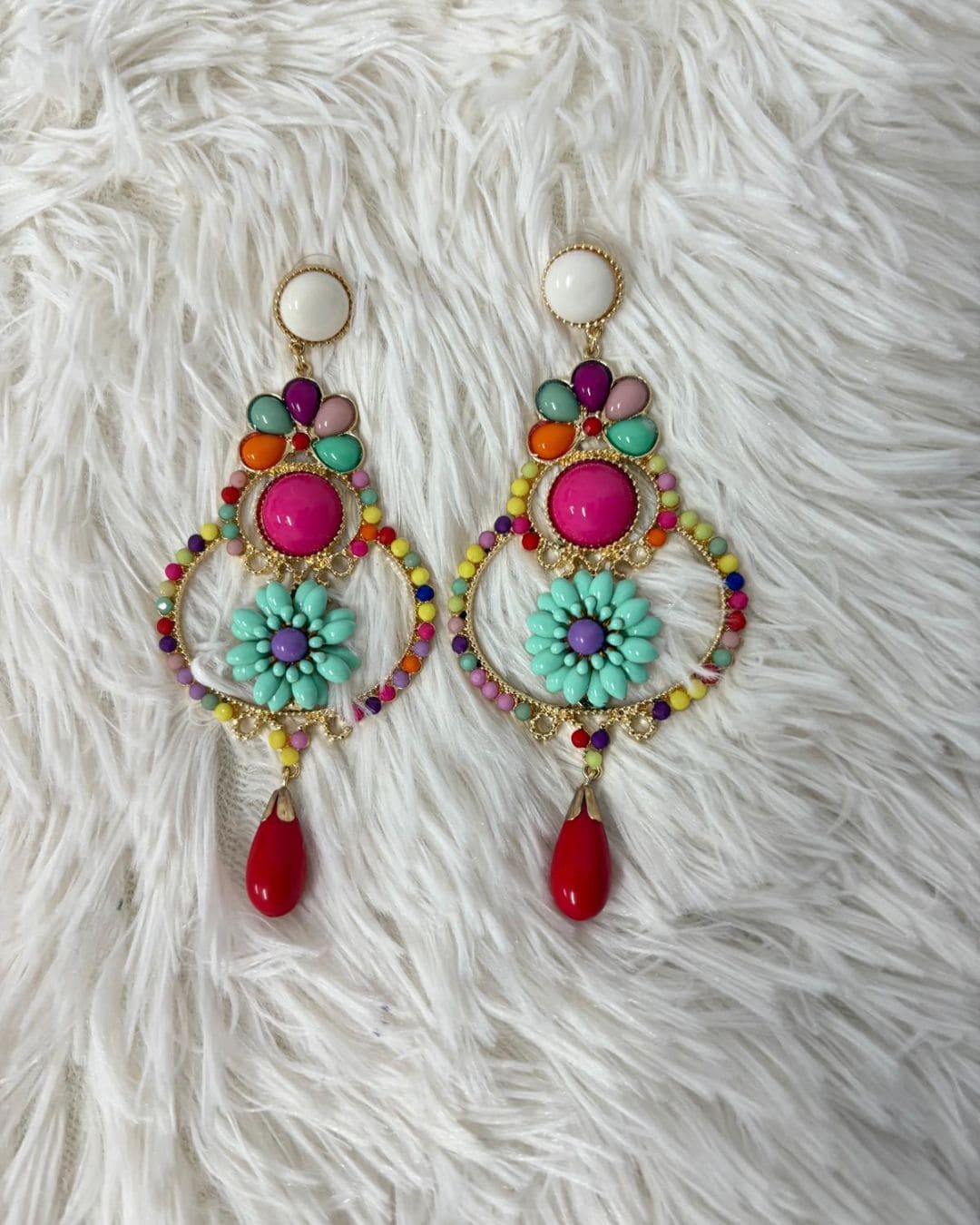 1. Pendientes con el labrado en dorado y diferentes piedras de colores.