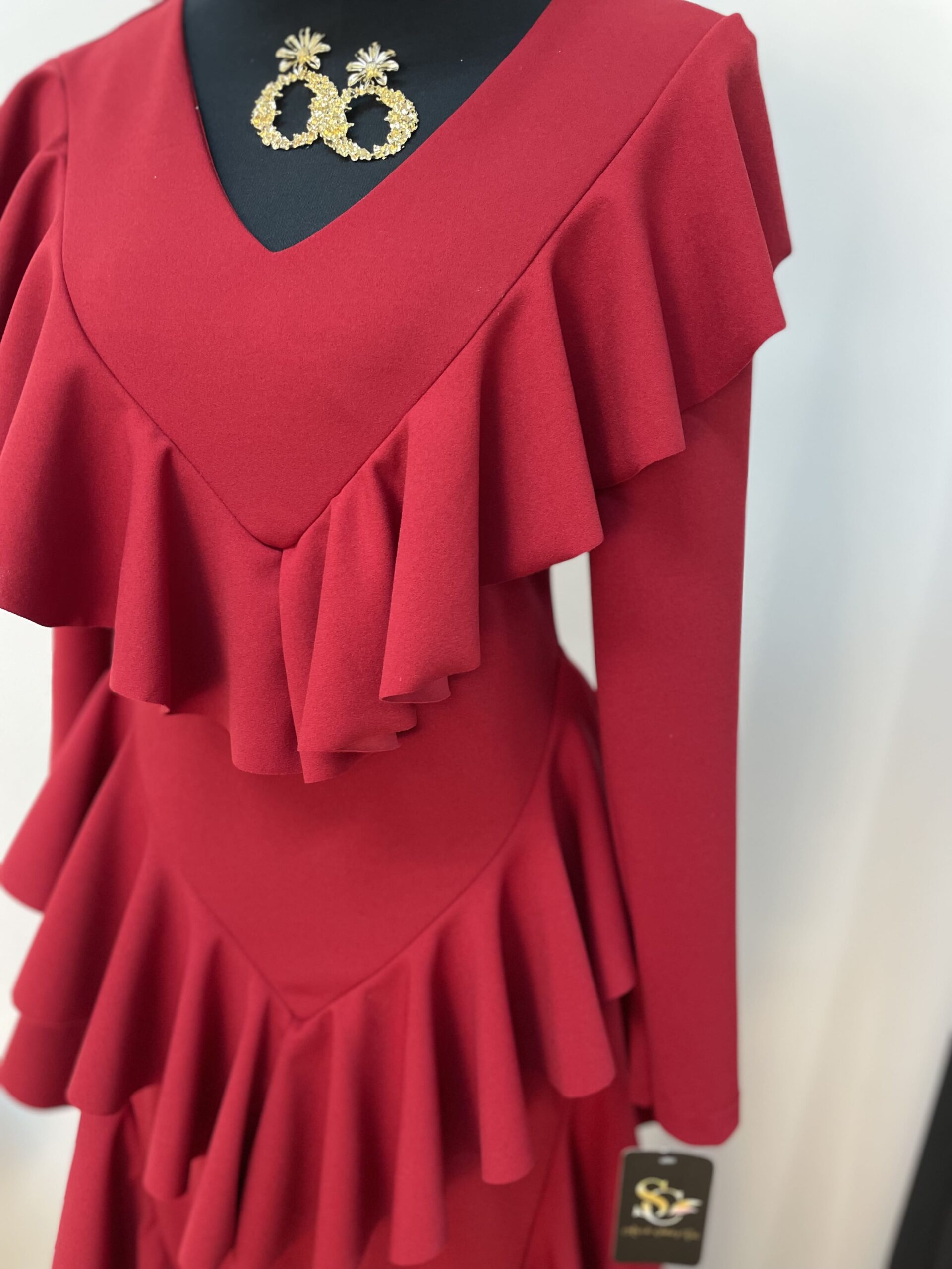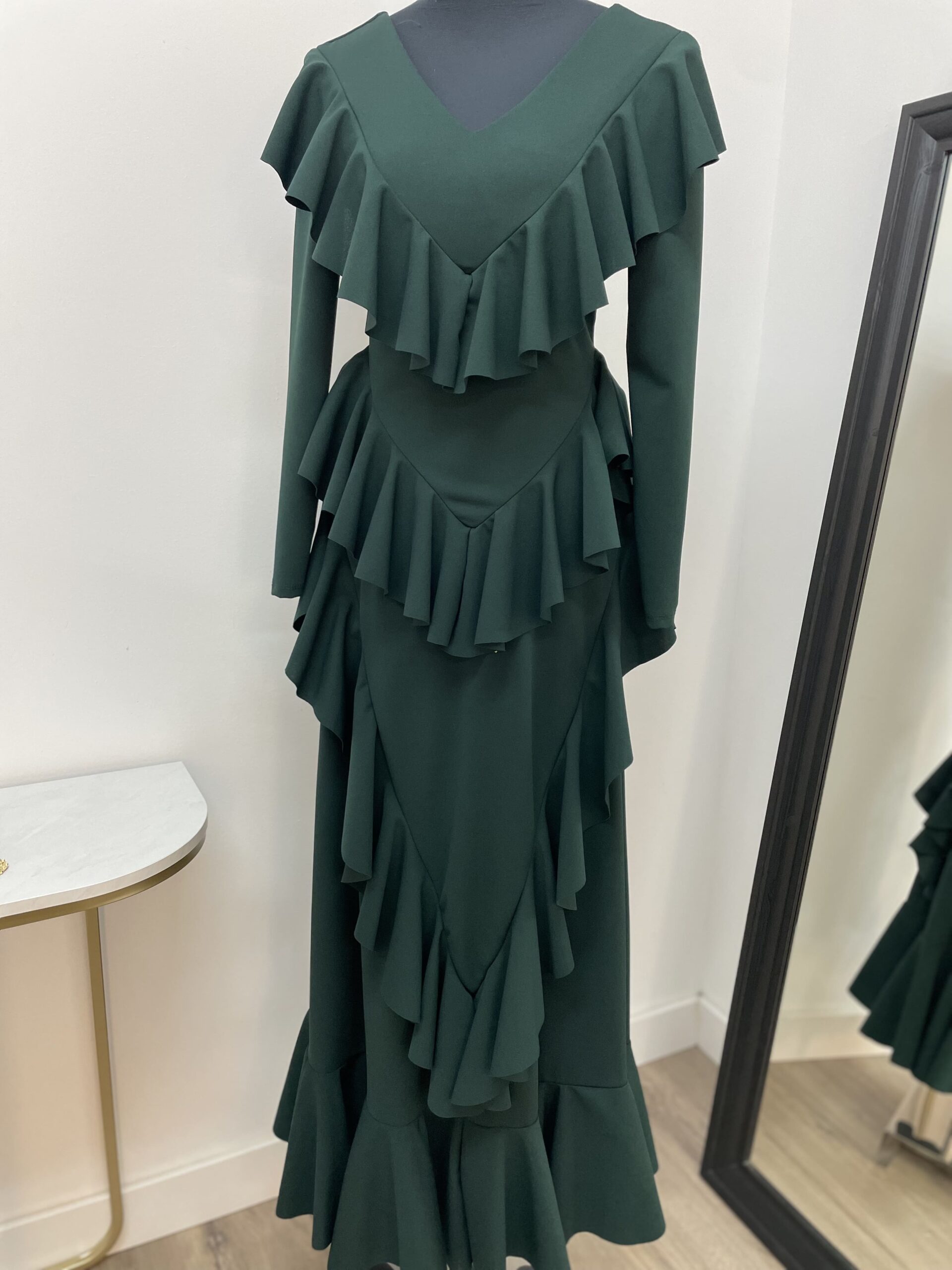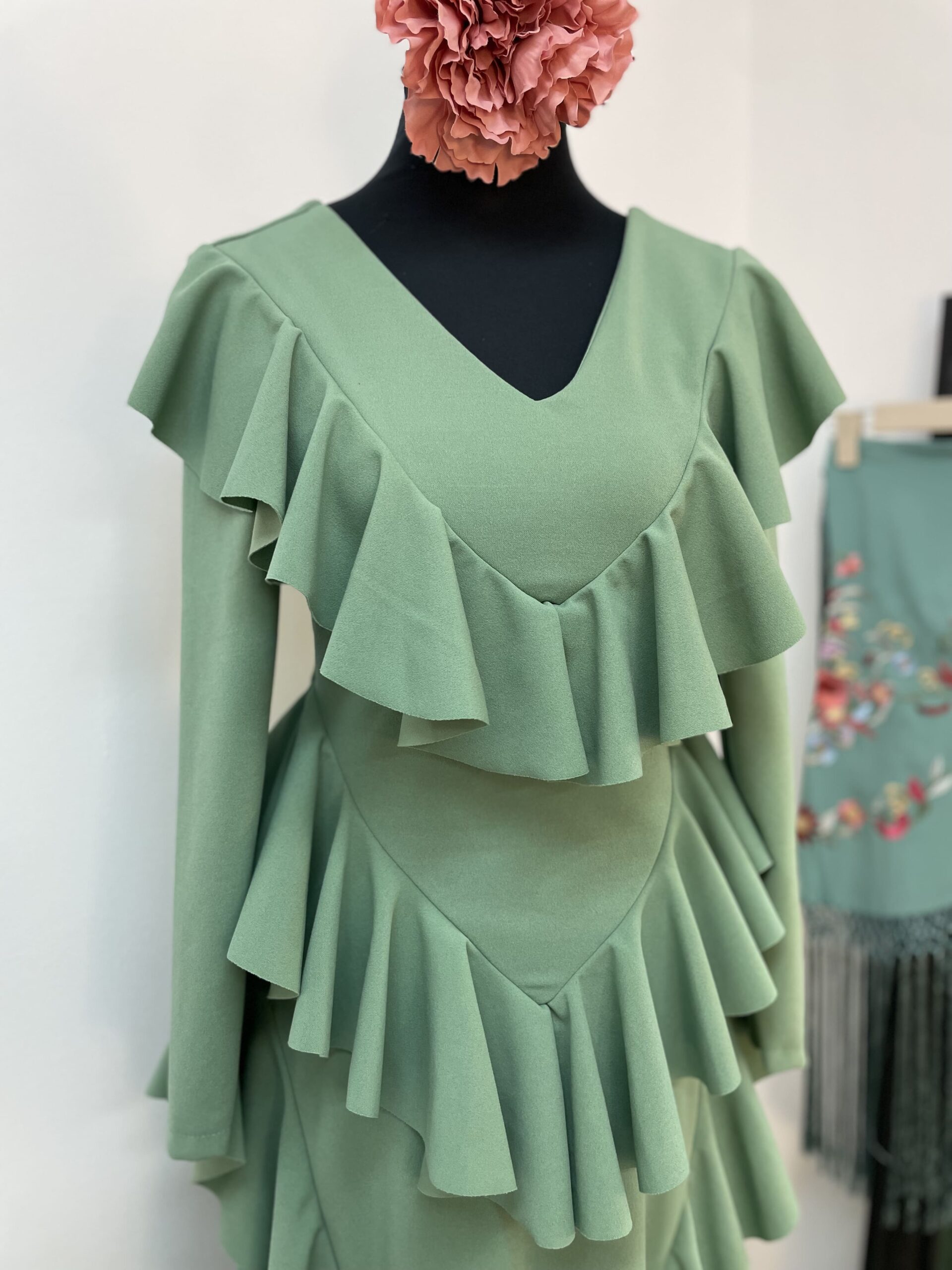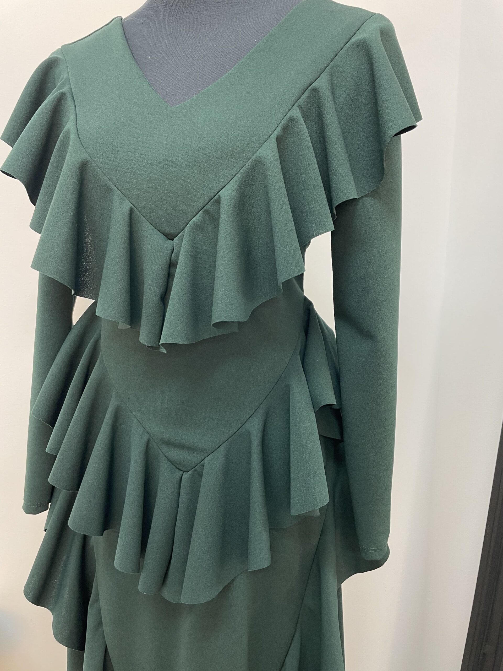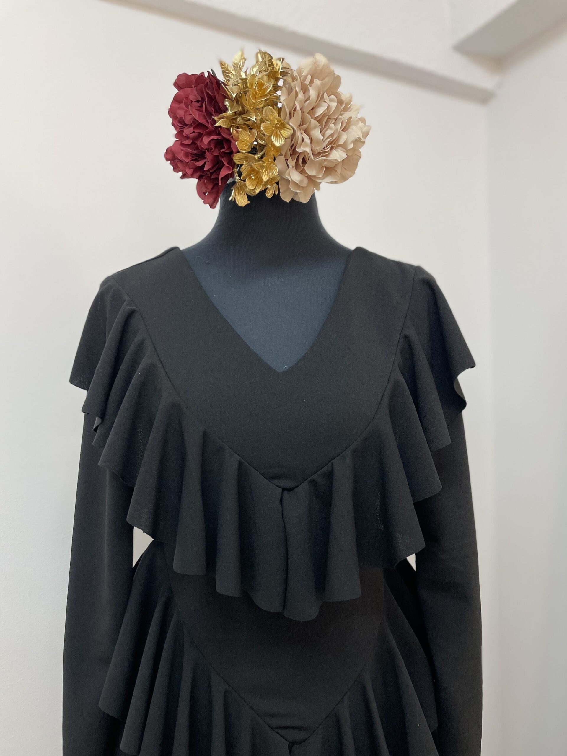 4. Cuerpo con 3 volantes en pico y volante al final de la falda cortado al láser.