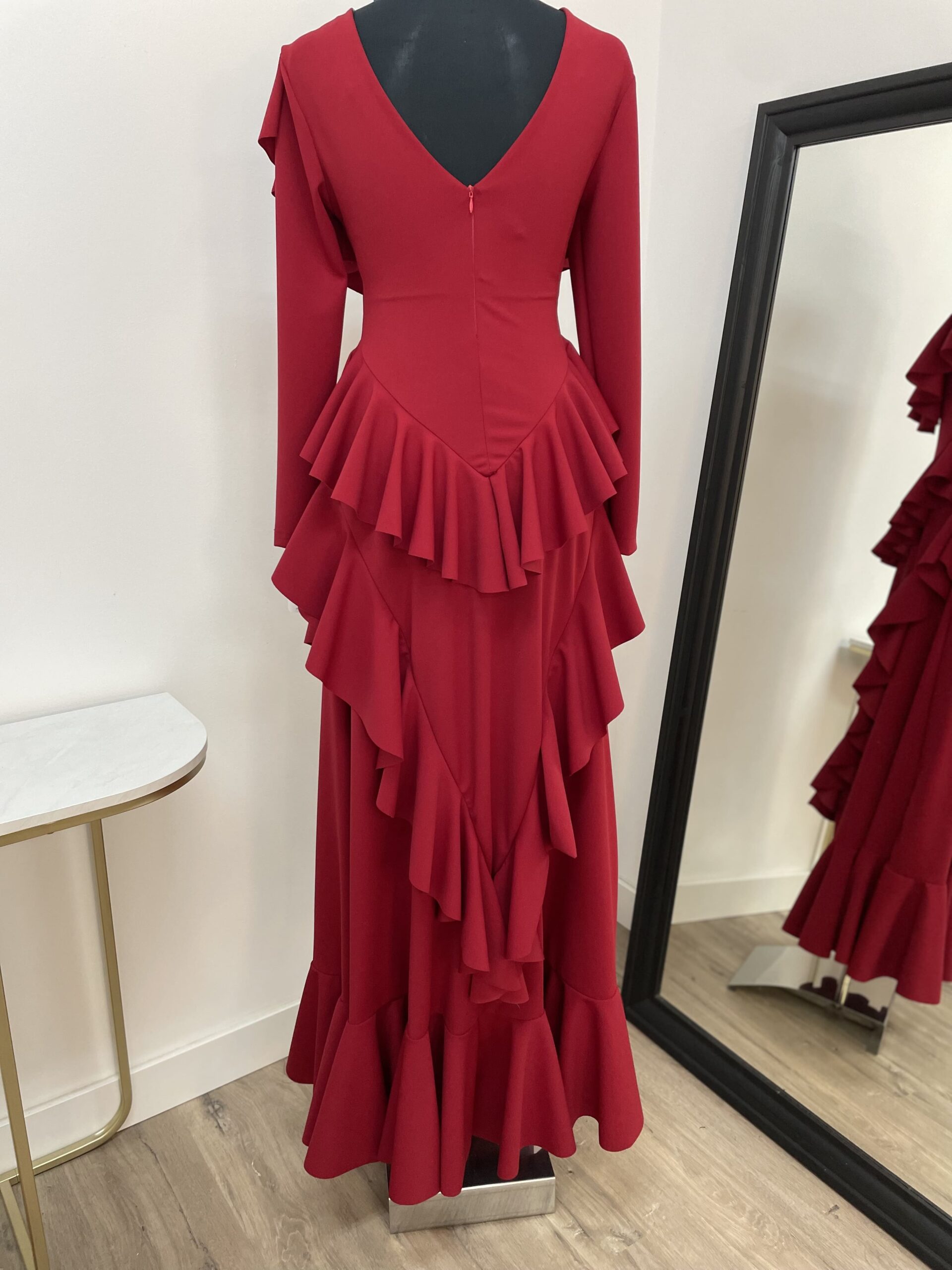 11. Largo del vestido (XS ó 34-36) 150 cm aprox, (1 ó 38) 150 cm aprox, (2 ó 40-42) 150 cm aprox y (3 ó 44-46-48) 152 cm aprox.